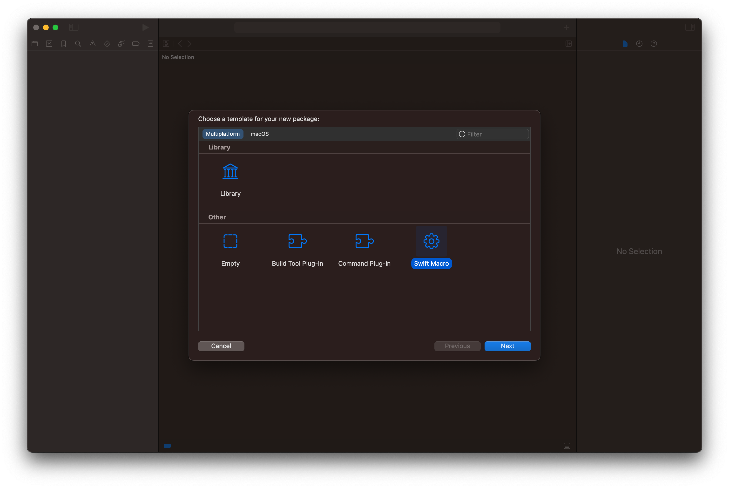 일단 메크로는 현재 Xcode 15 베타버전에서 생성 가능하며 File → New → Package.. 를 통해 생성할 수 있다.