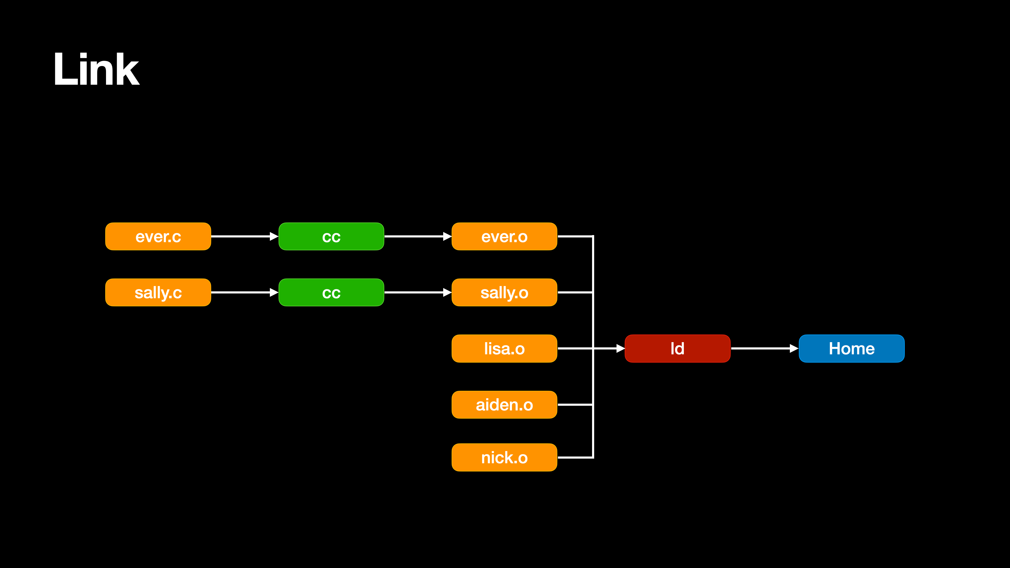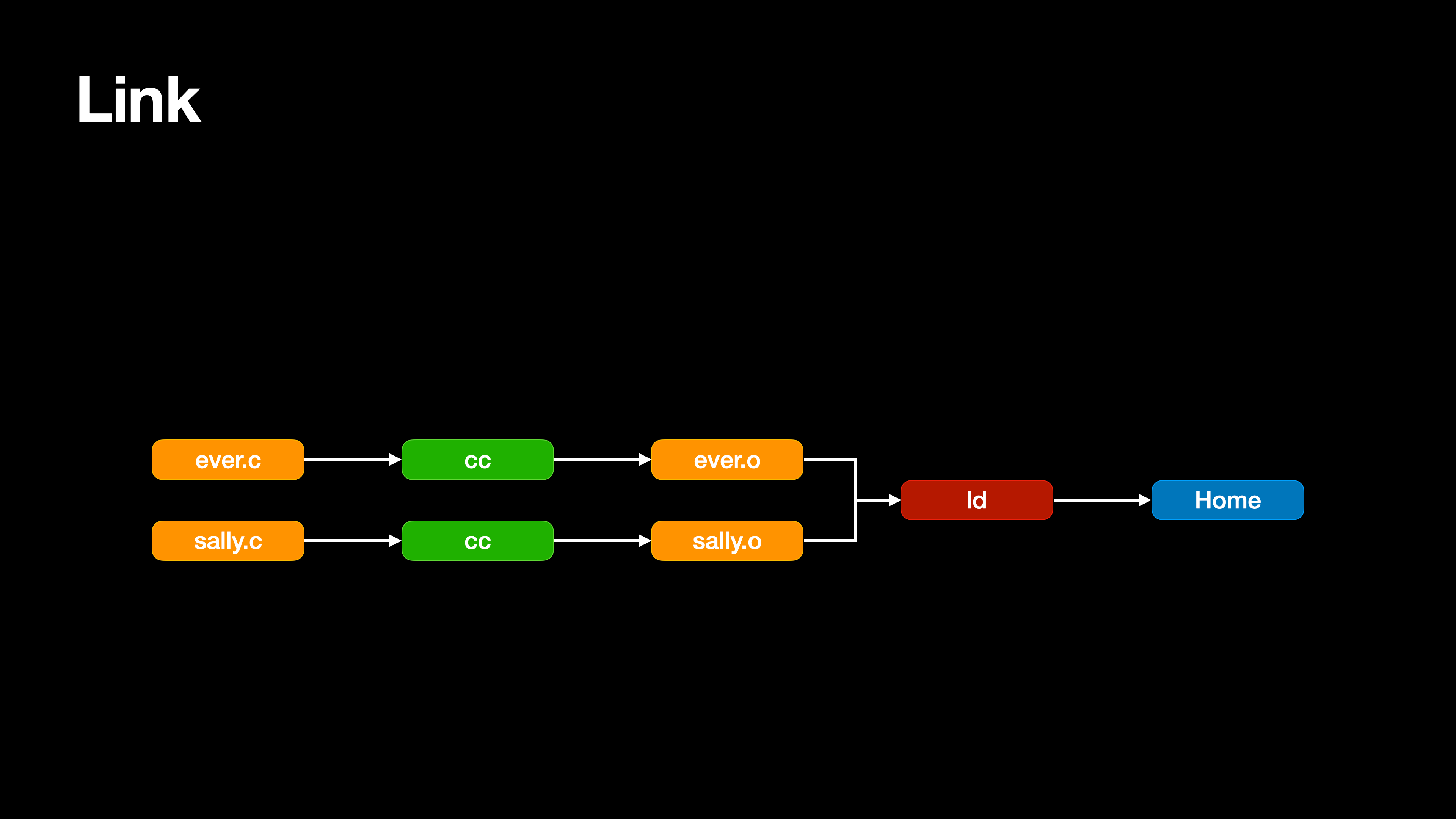 그렇게 각각의 소스파일을 컴파일하여 재배치 가능한 오브젝트 파일로 만들고 이렇게 생성된 오브젝트파일을 연결하여 하나의 실행 가능한 프로그램으로 만들어주는 링커가 등장했다.