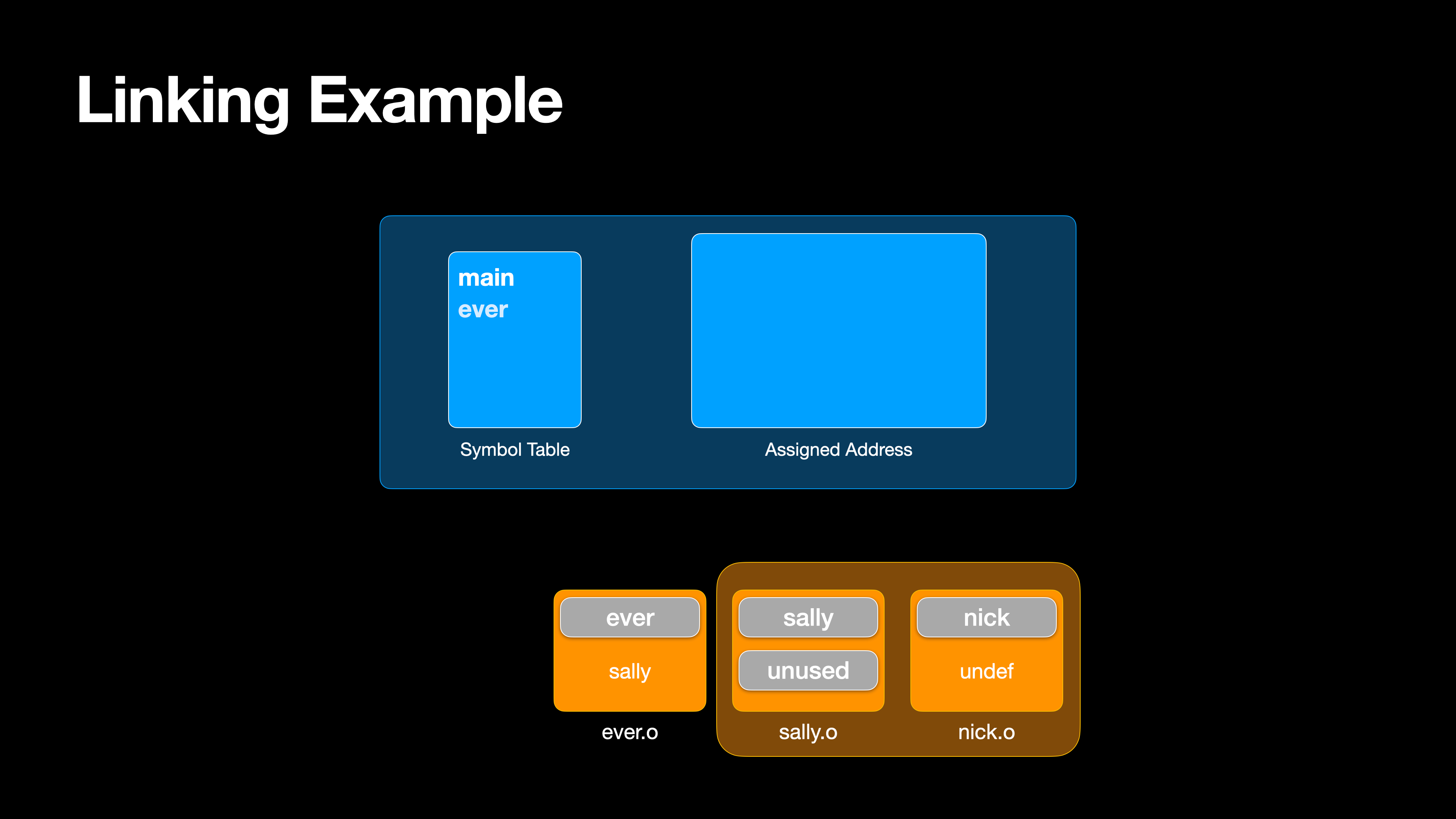 다음으로 ever.o파일을 로드하여 ever에 대한 심벌이 해결됐고, sally에 대한 심벌이 정의되어있지 않다.