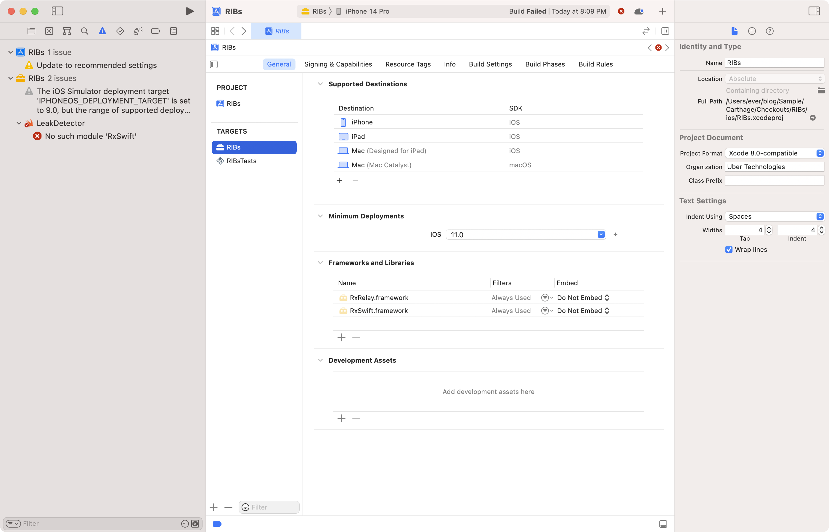 Checkout 된 RIBs 프로젝트를 열고 직접 빌드를 해봐도 RxSwift를 import 하지 못해 빌드를 못하고 있었다.