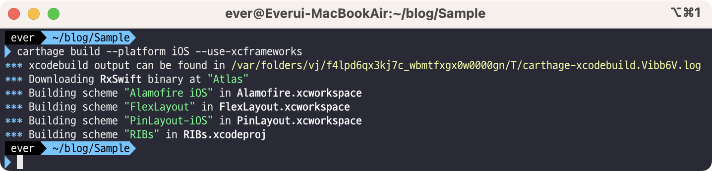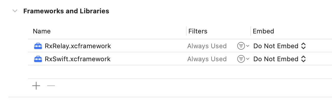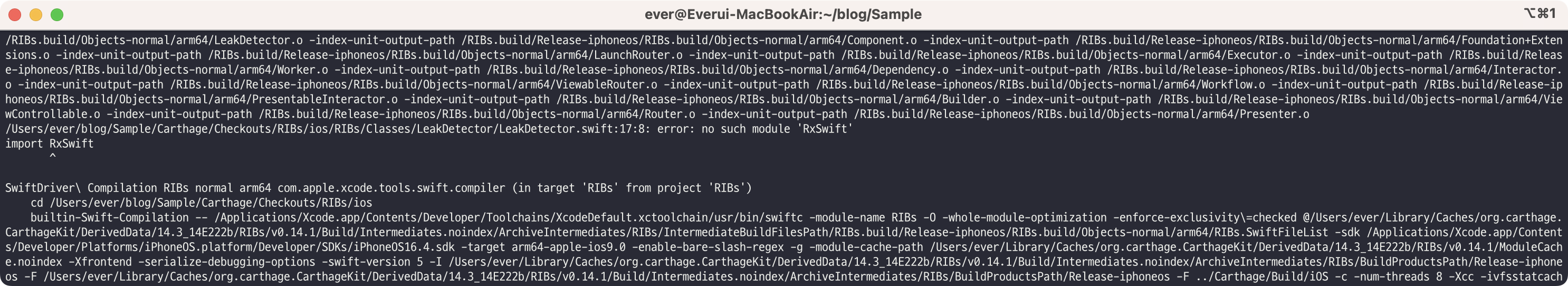 의존하고 있는 RxRelay 및 RxSwift는 이미 카르타고로 빌드 후 xcframework가 생성되어 있기 때문에 위의 두 프레임워크를 대체해 준 후 빌드를 시도해 보자.