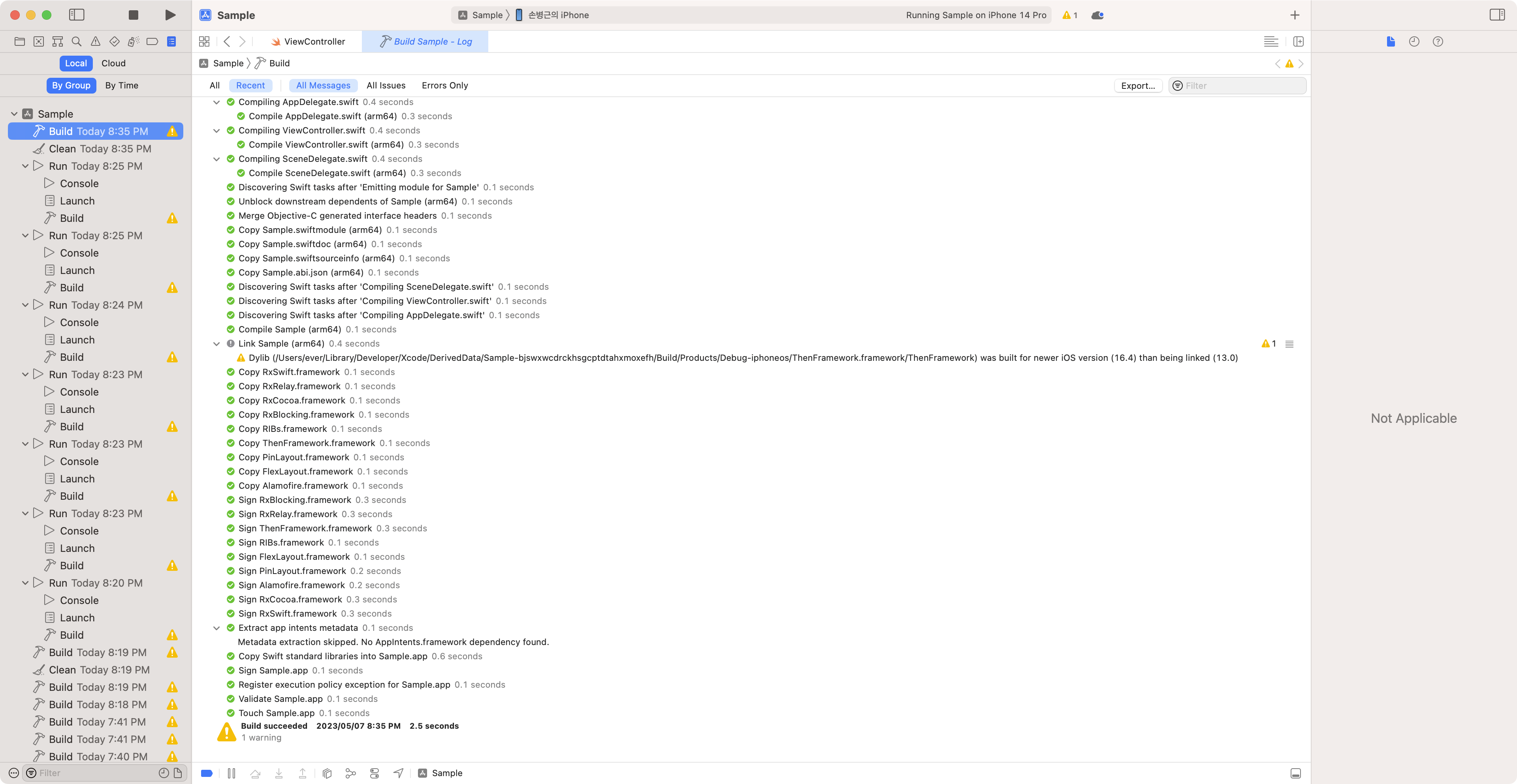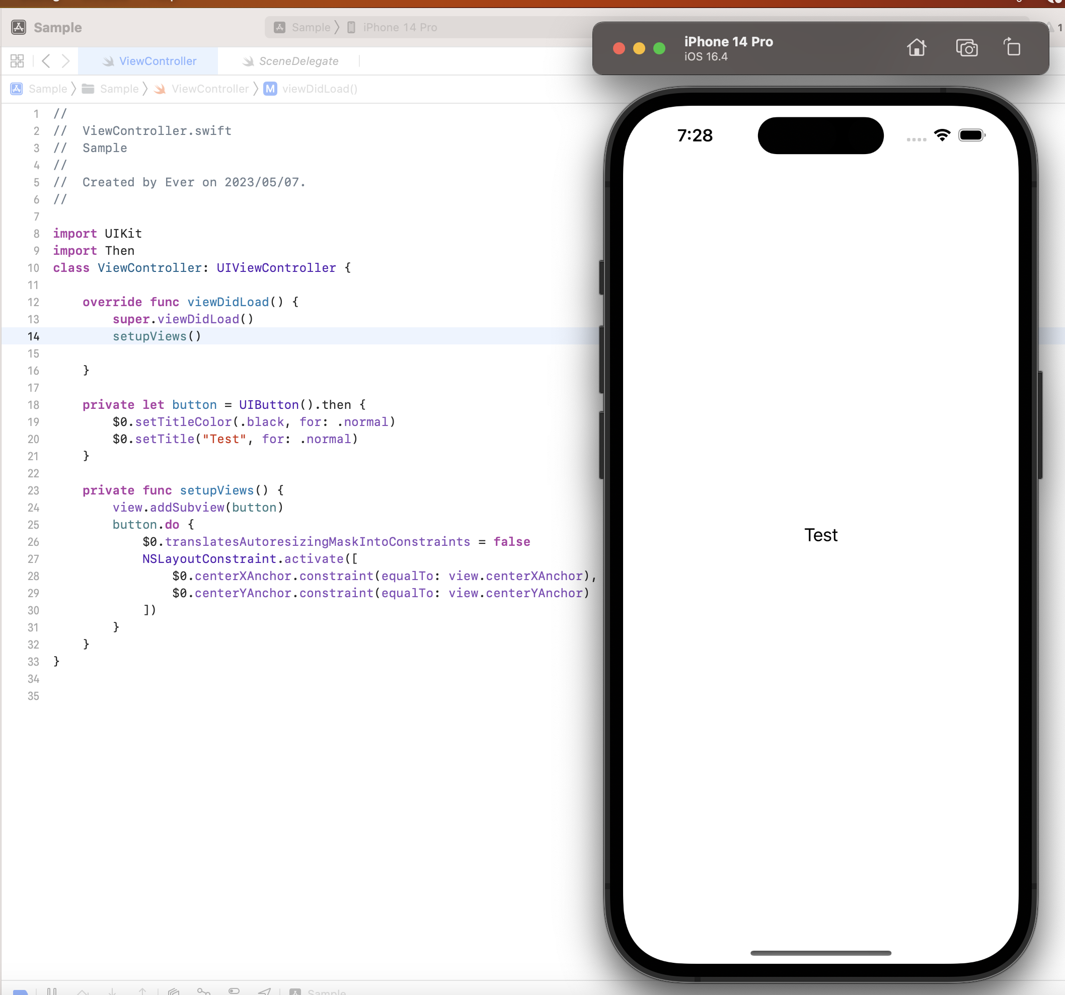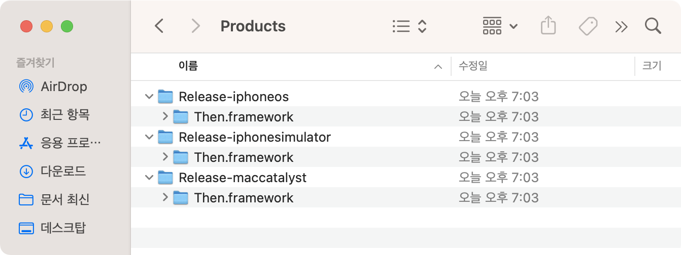 성공적으로 xcframework를 생성했다. 이제 샘플 앱 프로젝트에서 Then을 추가해 사용해 보자.