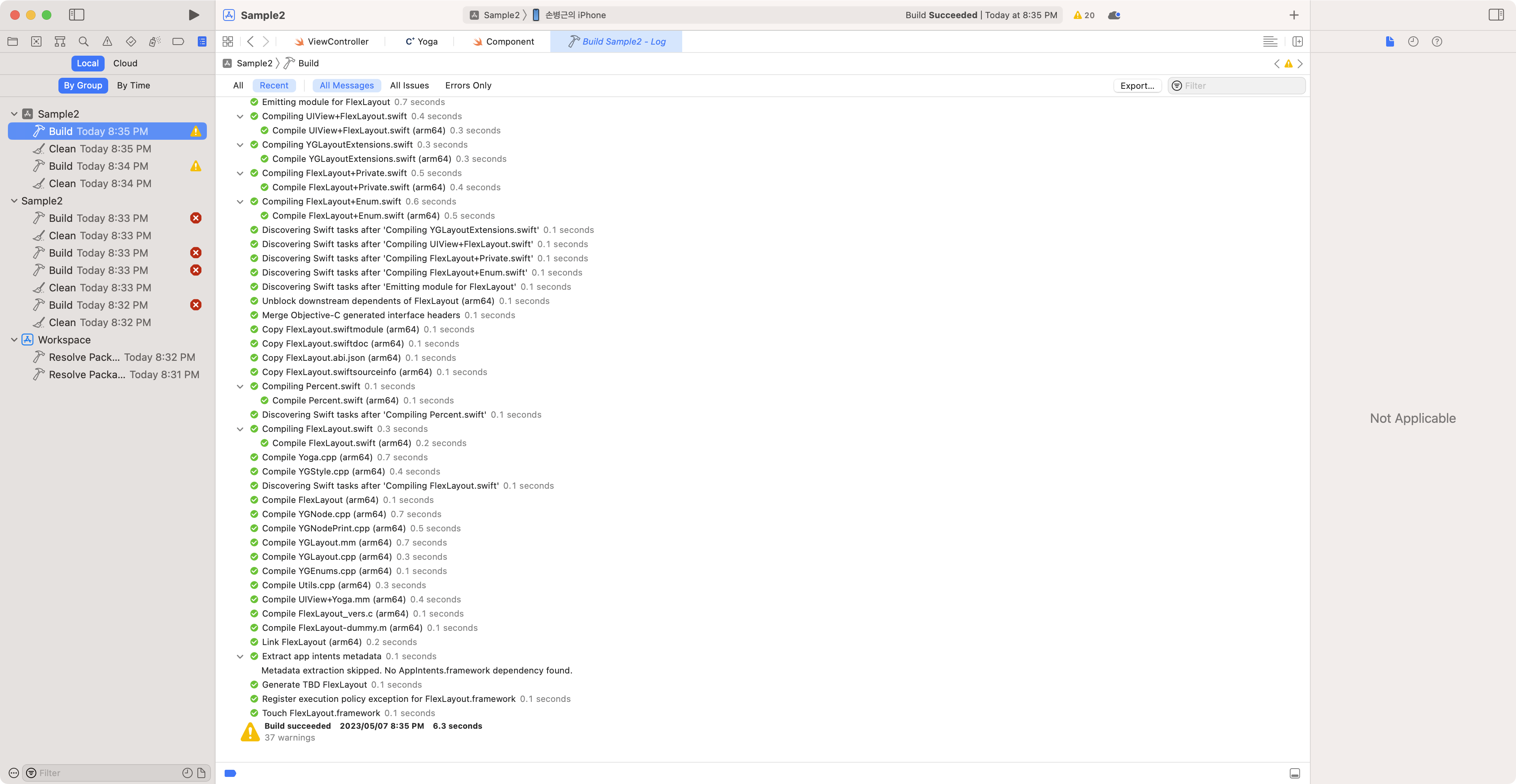 역시 한 번에 성공하면 재미가 없지... FlexLayout에서 빌드가 실패한 것 같다.